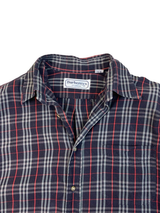 VINTAGE 80s BURBERRYS NOVA CHECK SHIRT NAVY BLUE SIZE L