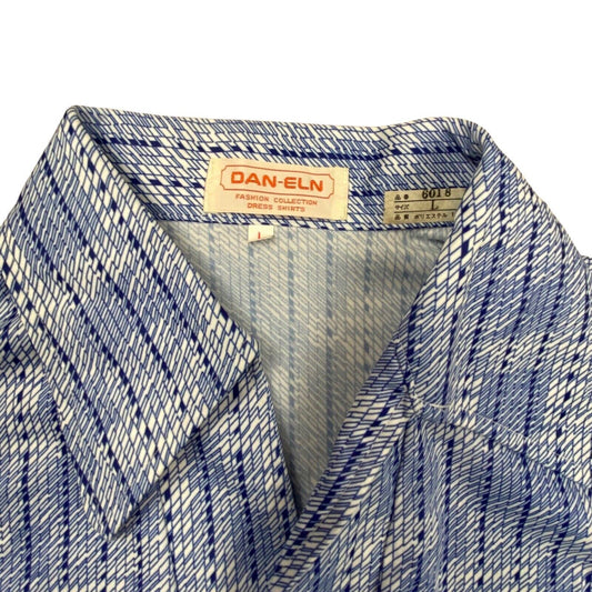 VTG 70s BIG COLLAR MENS POLY SMOCK SHIRT GEOMETRIC PSYCHEDELIC PRINT 40” (38) S