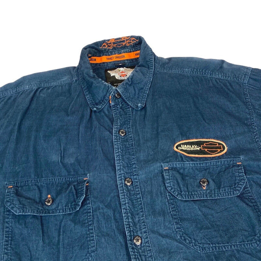 2006 Blue Harley Davidson Motorcycles Corduroy Workers Shirt Tall Large