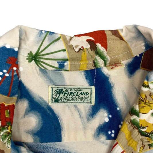VTG SUN SURF FIRELAND 40s 50s STYLE HAWAIIAN ALOHA SHIRT RAYON ROCKABILLY 38”