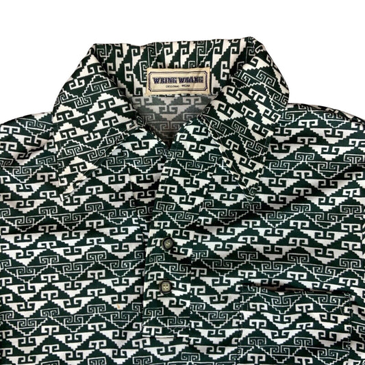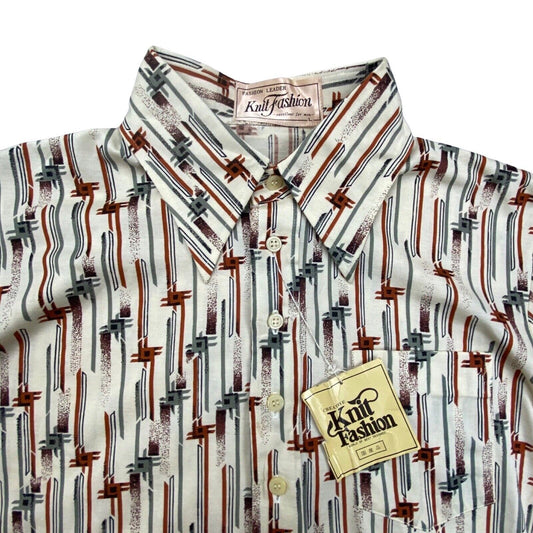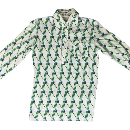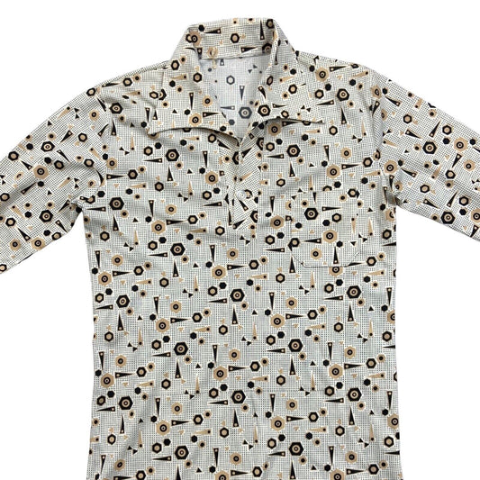 VTG 1970S BIG COLLAR MENS POLY SMOCK SHIRT GEOMETRIC PSYCHEDELIC PRINT 38” (36)