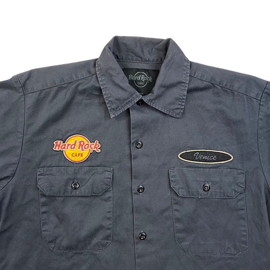 Vintage 90s 00s Grey Hard Rock Cafe Patch Button Up Shirt M