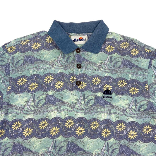 Vintage 90s Blue Green Sergio Tacchini Patterned Polo M