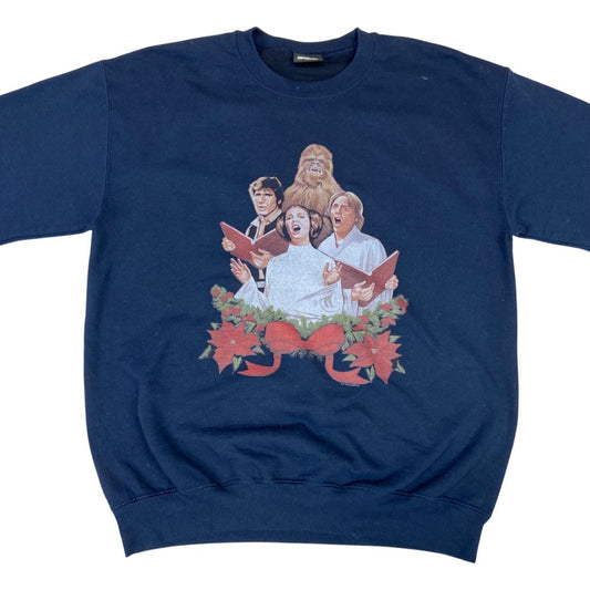 00s Navy Blue Christmas Star Wars Crew Neck Graphic Print Jumper M