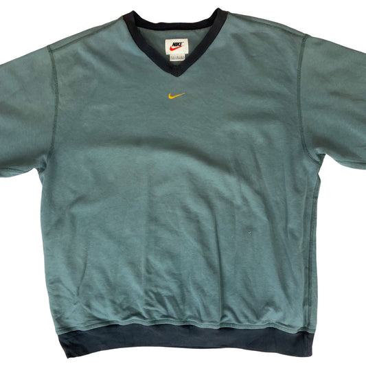 Vintage 90s 00s Nike Blue Green Grey Teal Nike V-Neck Embroidered Sweatshirt XXL