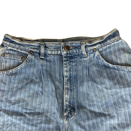 VTG USA UNION MADE LEE HERRINGBONE STRIPE DENIM HIGH WAIST JEANS WORKWEAR 29W 31