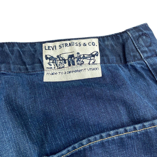 VTG LEVIS 3/4 LEG BAGGY SKATER JEANS DARK INDIGO SCREEN PRINTED PATCH 34’W 25’L