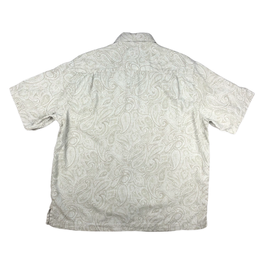 Vintage Beige Paisley Print Silk Shirt L
