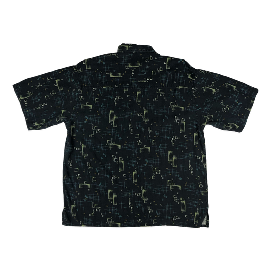 Vintage Black Abstract Print Silk Hawaiian Shirt XXL