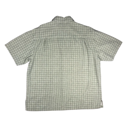 Vintage Abstract Print White Silk Shirt XL