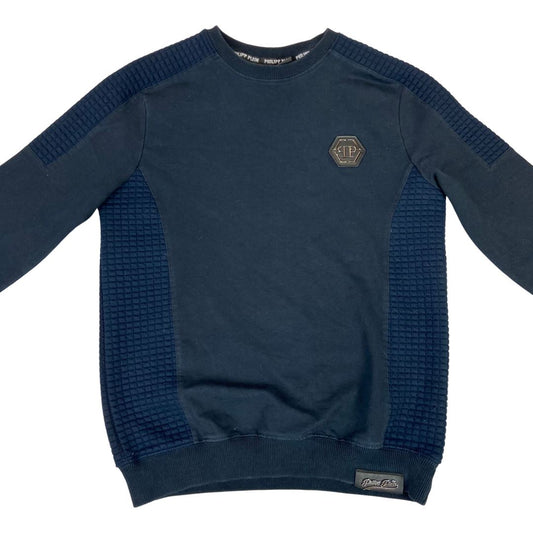 Vintage 90s 00s Navy Blue Embossed Philipp Plein Crew Neck Jumper M