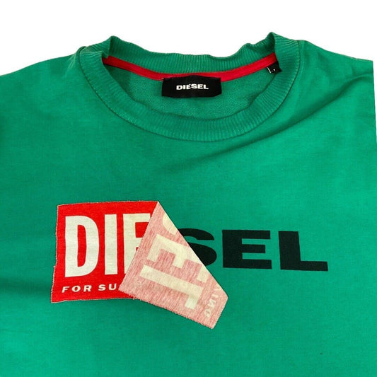 Vintage 00s Green Red Diesel Spellout Box Logo Crew Neck Jumper XL
