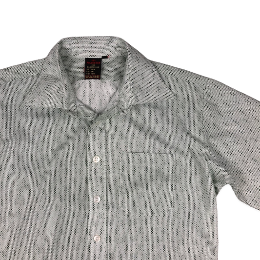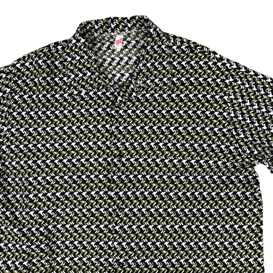 Vintage 70s Green and White Abstract Print Shirt L