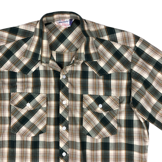 Vintage Western Style Beige and Green Plaid Shirt Shirt L