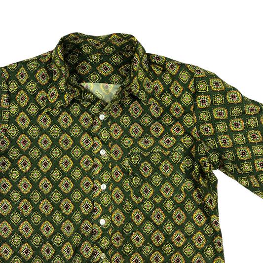 Vintage 70s Green Abstract Print Shirt L