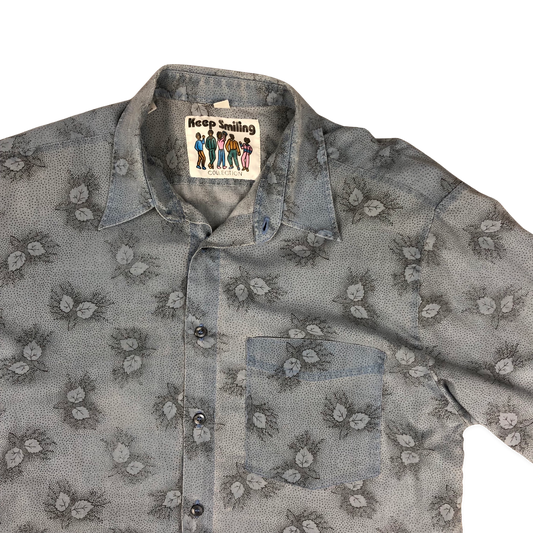 Vintage 80s Leaf Print Blue Shirt L