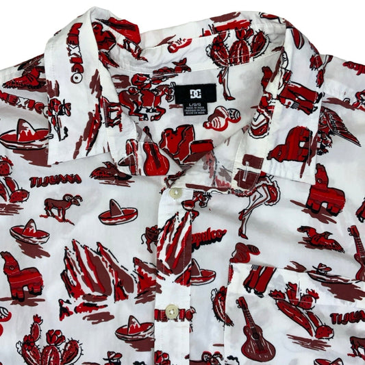 Vintage DC White Red Western Graphic Short Sleeved Shirt M