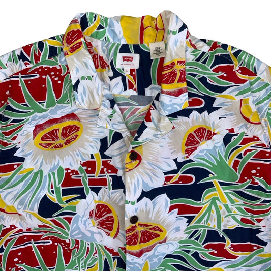 Vintage 90s 'Levi's' Hawaiian Fruity Abstract Floral Short Sleeved Shirt M L