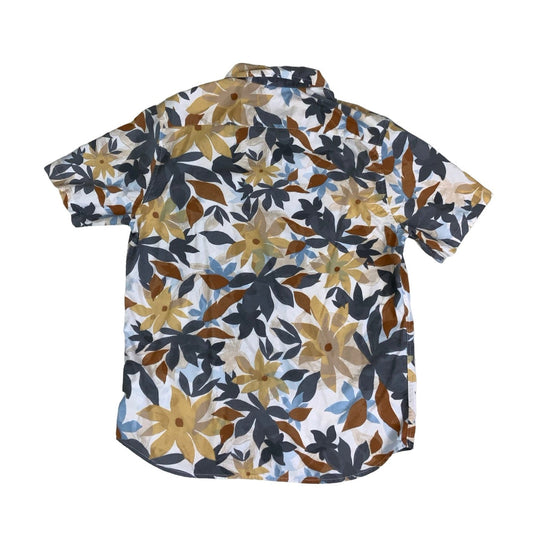 Vintage 'Quicksilver' Brown Blue Yellow White Hawaiian Floral Short Sleeved Surf Shirt L XL