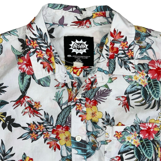 Vintage 90s DC Comics Batman Classic TV Series Hawaiian Floral White Short Sleeved Shirt M