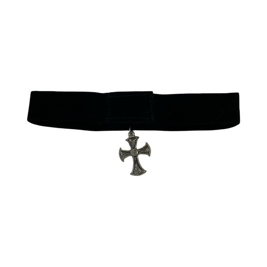 Vintage Deadstock 90s Y2K Silver Cross Gem Stone Grunge Gothic Velvet Choker