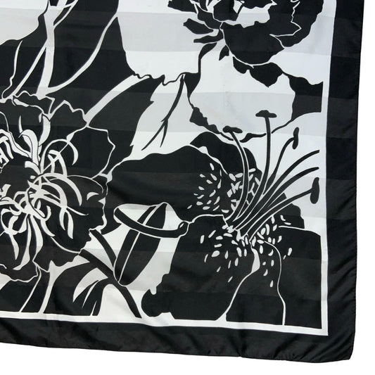 VTG BLACK WHITE TROPICAL FLORAL FLOWER SQUARE SCARF