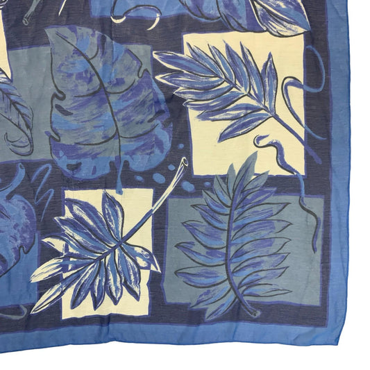 VTG 90s BLUE WHITE BOTANICAL LEAF PATCH GEOMETRIC PATTERNED SQUARE SCARF