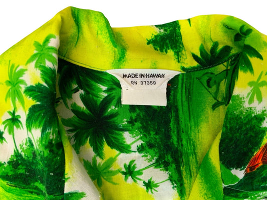 VTG HAWAIIAN MADE ALOHA SHIRT COTTON TIKI ROCKABILLY HAWAII SURF LONGBOARD LARGE