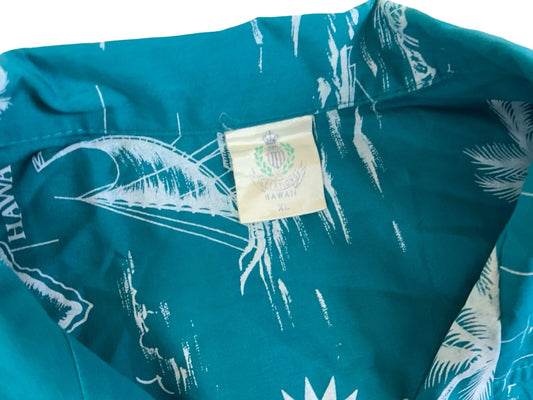 VTG 60s 70s HAWAIIAN MADE ALOHA SHIRT COTTON TIKI ROCKABILLY HAWAII SURFER SMALL
