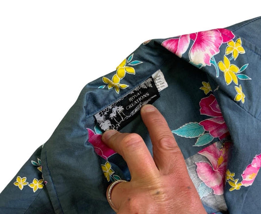 VTG ROYAL CREATIONS HAWAIIAN MADE ALOHA SHIRT COTTON TIKI ROCKABILLY M 40”