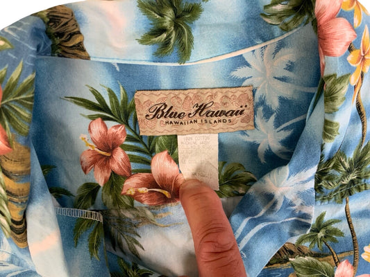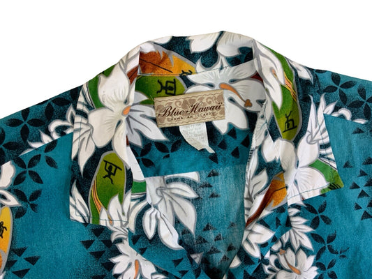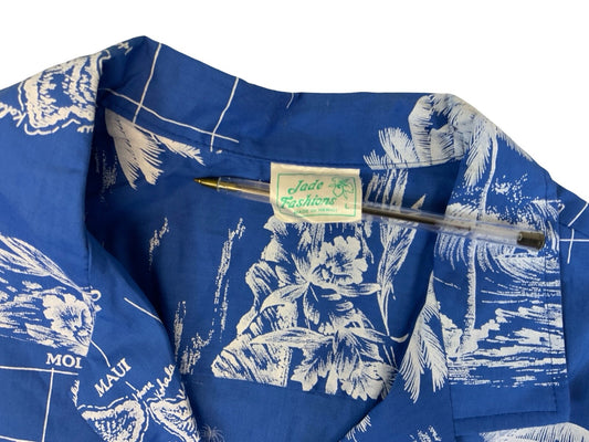 VTG BLUE HAWAII HAWAIIAN MADE ELVIS ALOHA SHIRT COTTON TIKI ROCKABILLY S 38”