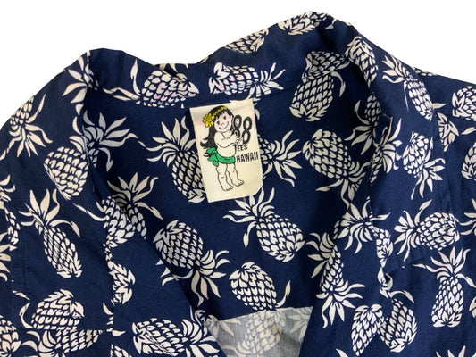 VTG 88 HAWAIIAN MADE PINEAPPLE ALOHA SHIRT COTTON TIKI ROCKABILLY M 40”