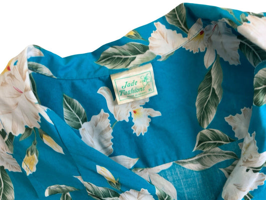 VTG JADE FASHIONS HAWAIIAN MADE ALOHA SHIRT COTTON TIKI ROCKABILLY XL 44”