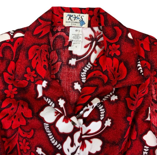 VTG KY'S MADE IN HAWAII RED WHITE ALOHA SHIRT TIKI ROCKABILLY FLORAL SURF S 10