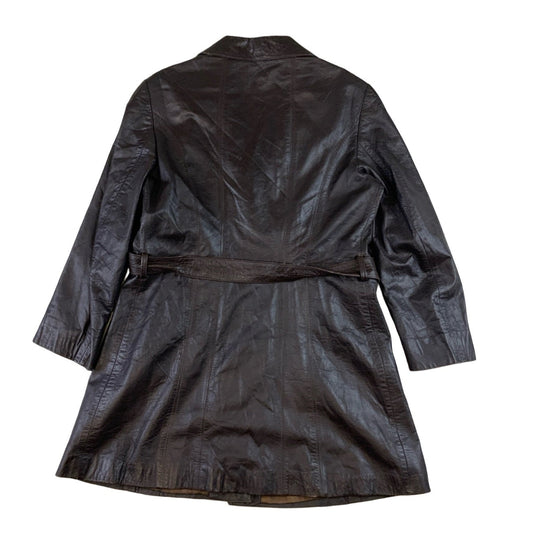 Vintage Deep Brown Leather Belted Jacket 10 12