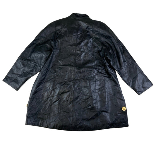Vintage Black Leather Double Breasted Long Leather Coat 10 12
