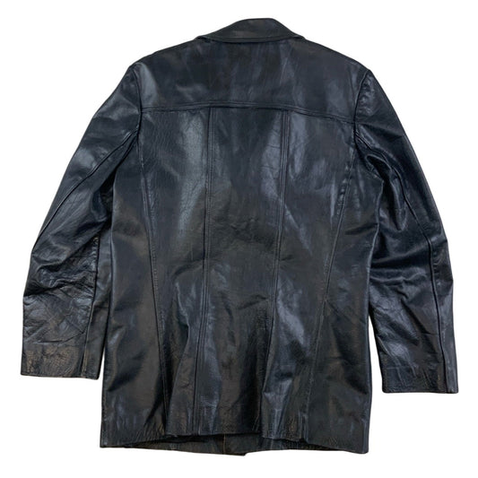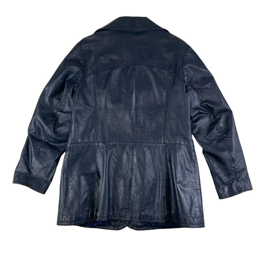 Vintage Navy Real Leather Double Breasted Jacket S M
