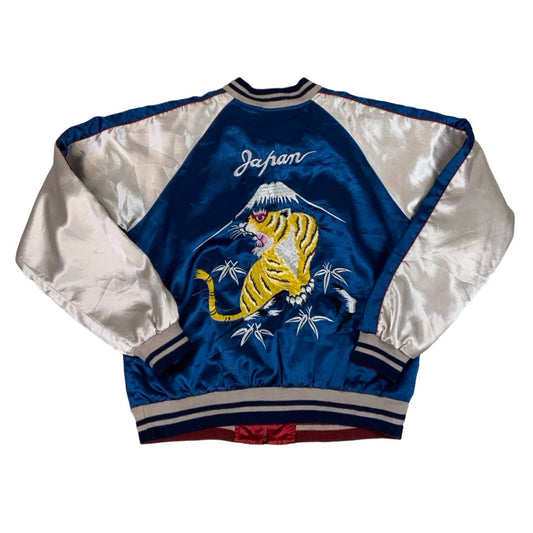 Vintage Japanese Silky Embroidered Blue & White Varsity Jacket XS S