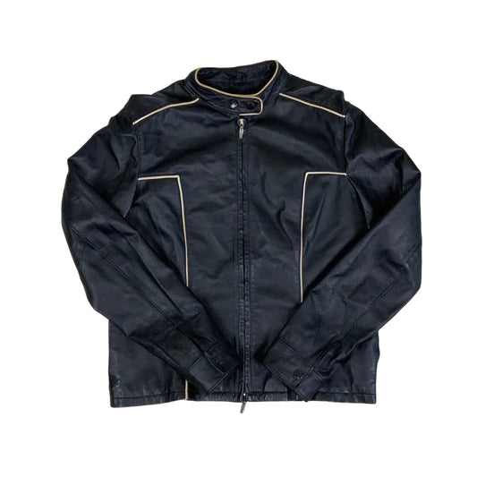 Vintage 90s Pelle Black Leather Biker Jacket 12 S