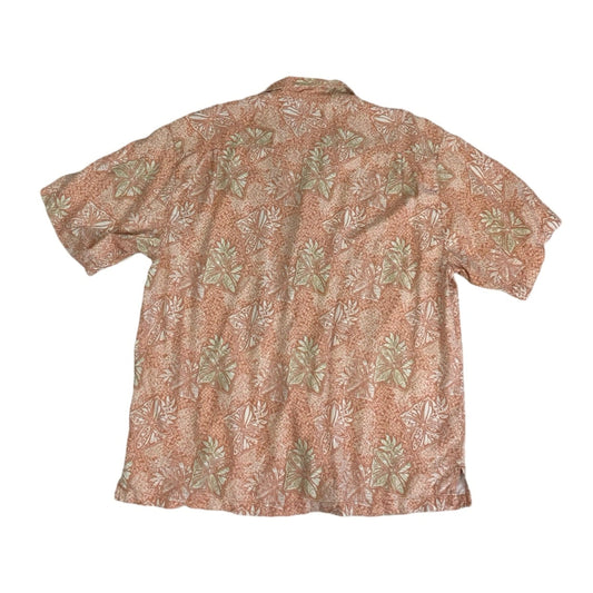Vintage 'Tommy Bahama' Peach Pink White Hawaiian Floral Short Sleeved Shirt L XL