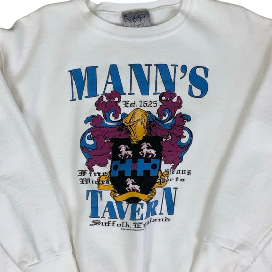 Vintage 90s 'Mann's Tavern' Suffolk, England 'Delta' White Crest Graphic Sweatshirt