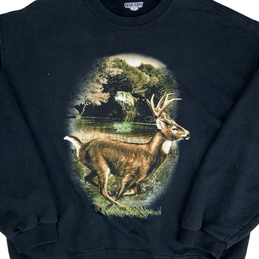 Vintage 90s Jerszees Deer Fish Graphic Crewneck Sweatshirt M L