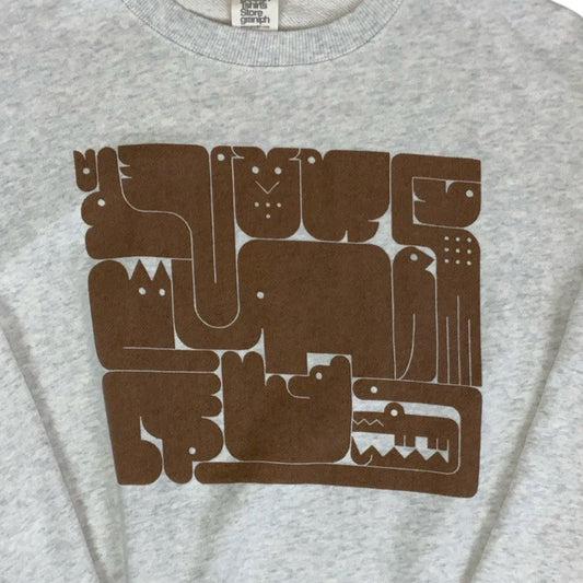 Vintage 90s 'Design T-Shirts Store Graniph' Wooden Animal Puzzle Brown Grey Graphic Sweatshirt
