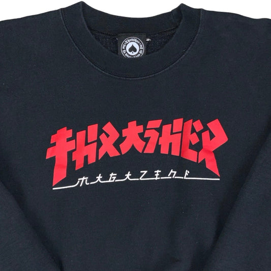 Vintage 90s 'Thrasher Magazine' Black Red Spell-Out Graphic Sweatshirt S M