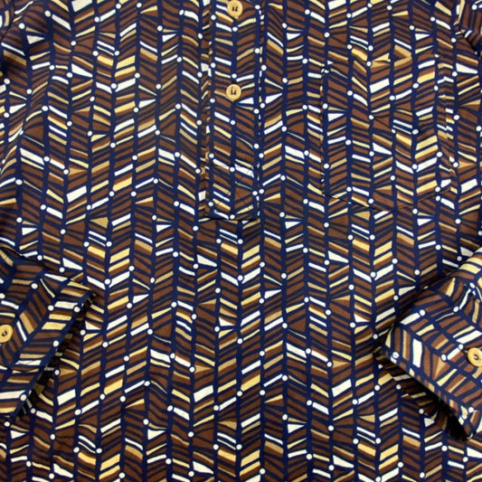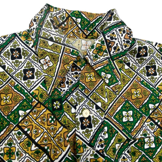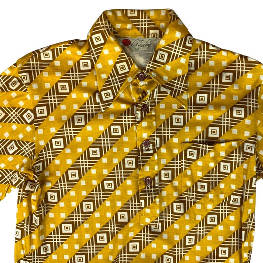 VTG 1970S BIG COLLAR MENS POLY SMOCK SHIRT GEOMETRIC PSYCHEDELIC PRINT 38” (36)