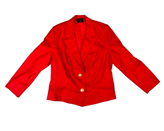 VTG 80s VALENTINO RED BLAZER FITTED GOLD BUTTON JACKET SIZE M-L 12 14 16
