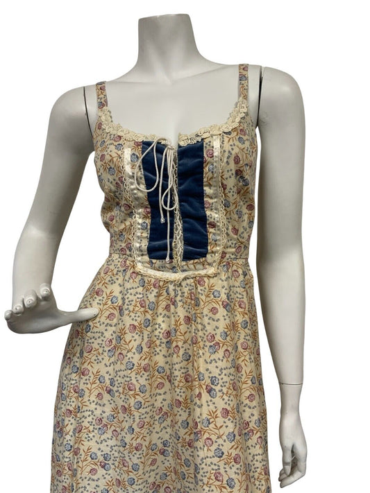 VTG 70s JESSICA MCLINTOCK GUNNE SAX BLUE PURPLE FLORAL FOLK MAXI DRESS M 12 14