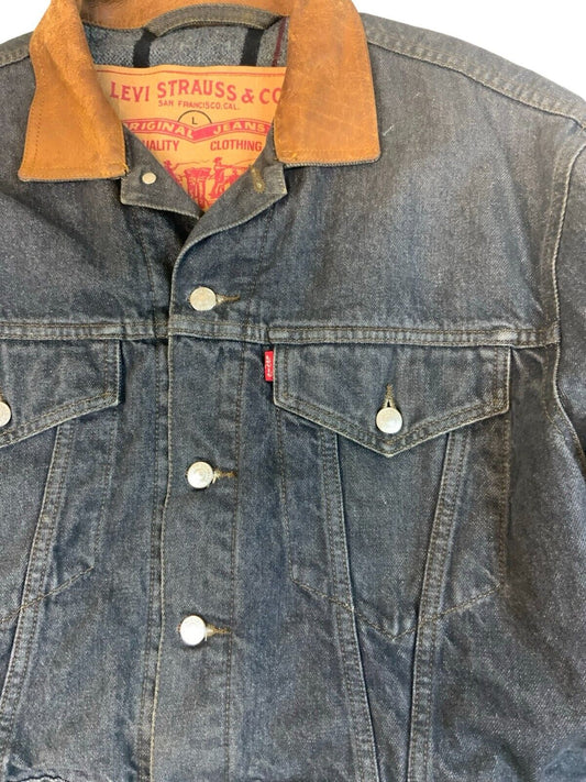 VTG 1980s LEVIS BLANKET LINED SHORT BLACK TYPE 3 TRUCKER DENIM JACKET L 44