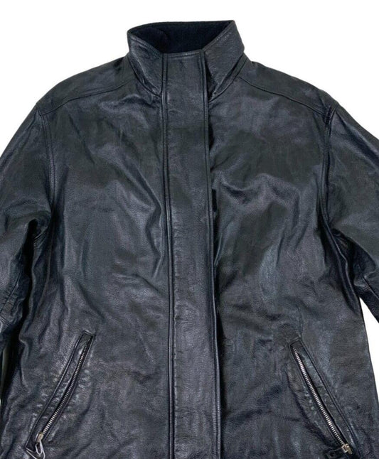 VTG ARMANI JEANS ZIP UP BLACK LEATHER JACKET SIZE M 42"