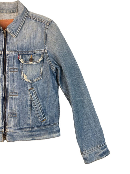 VTG 90s JAPANESE LEVIS PLEAT FRONT ZIP UP TYPE 2 DISTRESSED DENIM JACKET S 36
